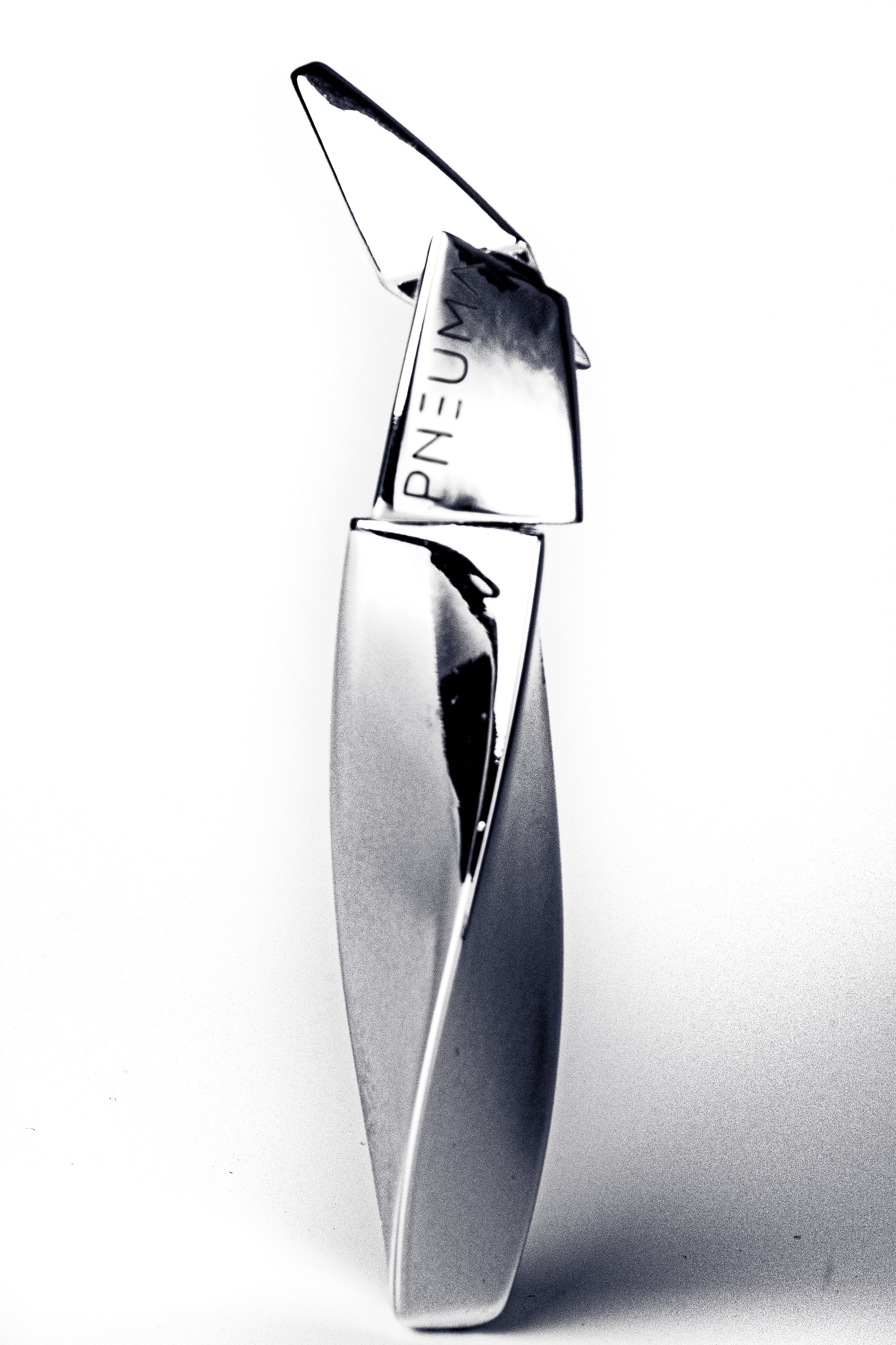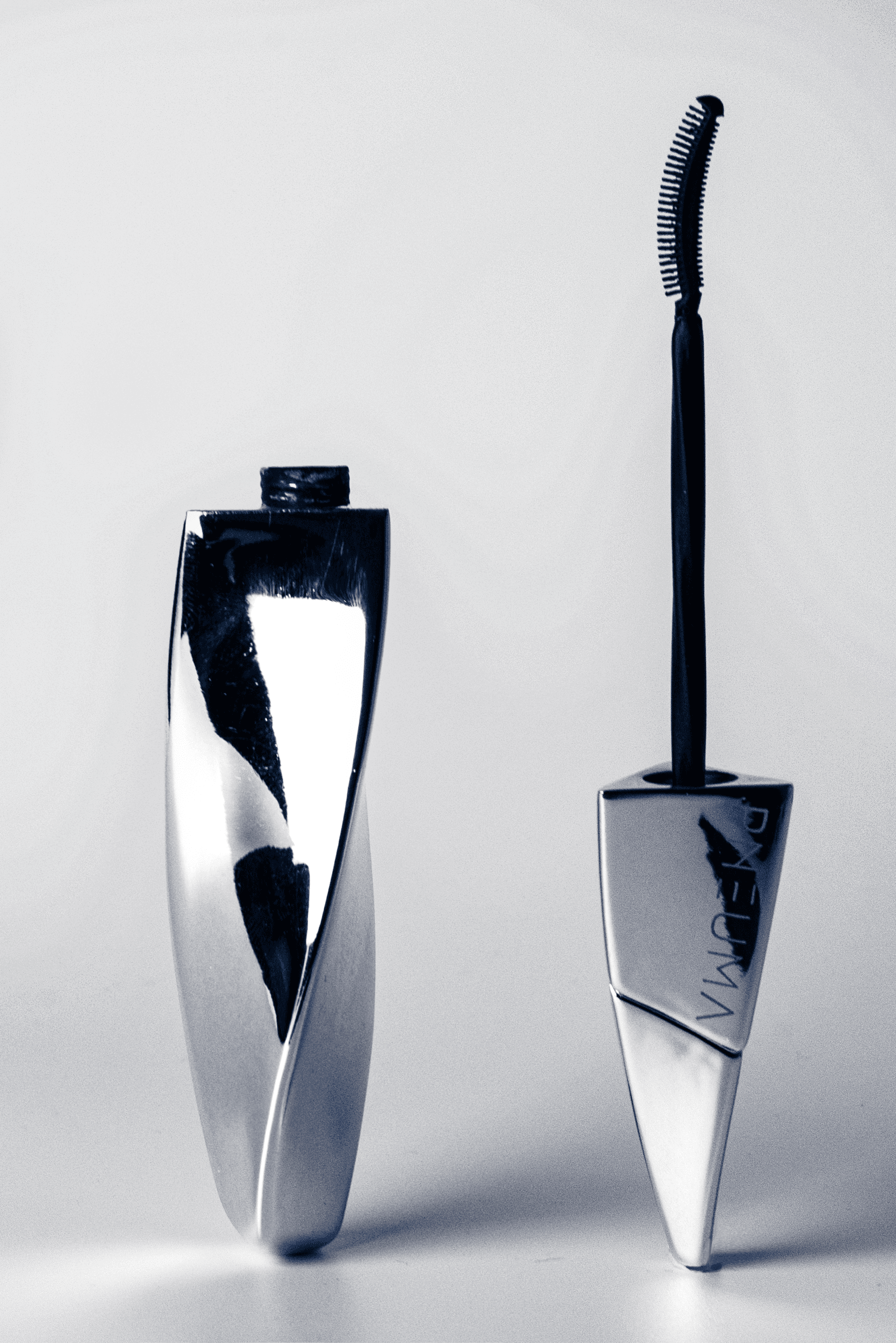 A waterproof mascara concept built around two personalization levers: a swivel grip for more controlled application angles, and replaceable wand heads (long/short) to match different lash styles and user preferences. The form language borrows from sculptural, rotating symmetry to communicate “gentle but firm,” aligning with the PNEUMA concept.