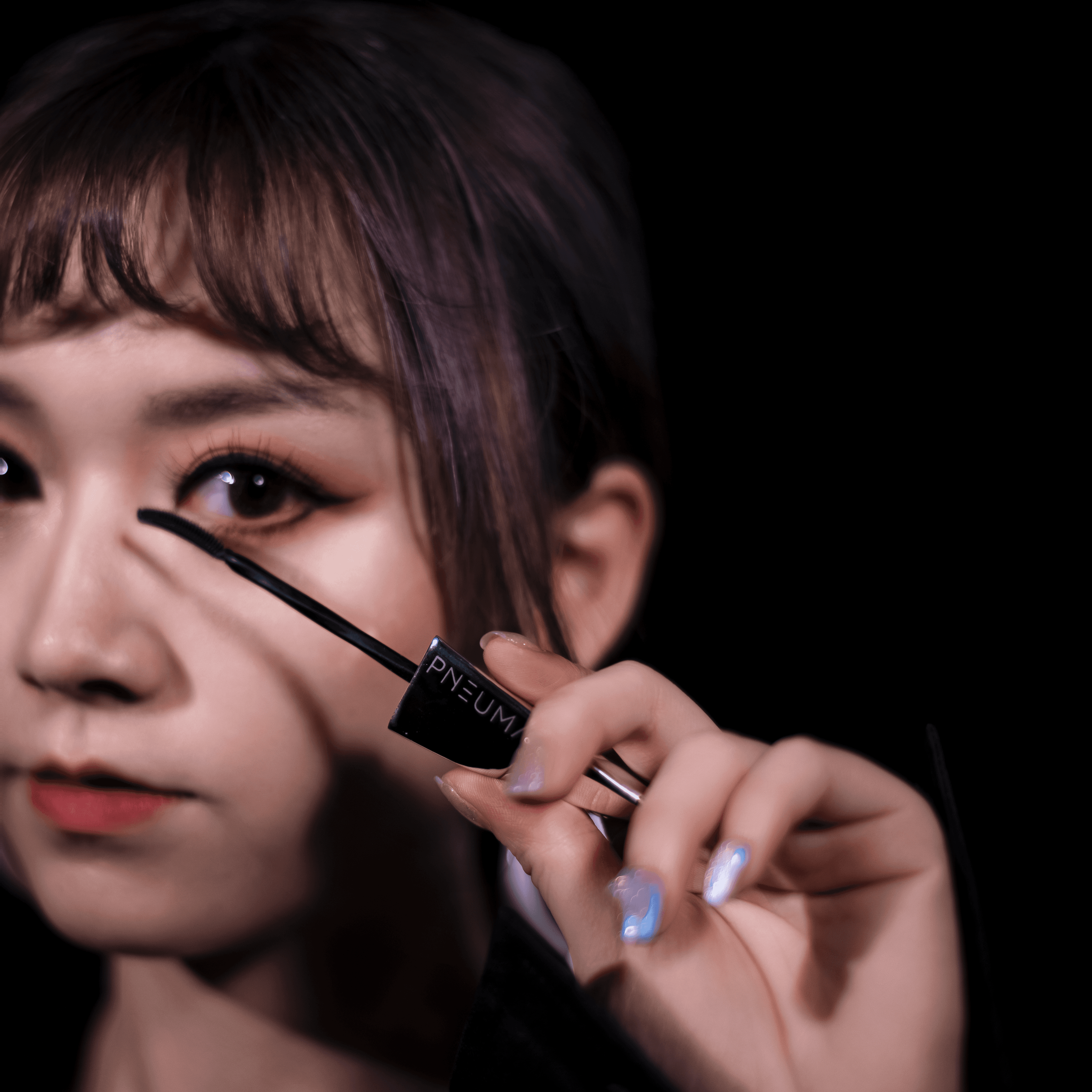 Most mascara packages assume a single “best” grip and a single brush geometry, but users vary heavily in wrist mobility, application habits, and desired lash results. PNEUMA reframes mascara as a personalizable tool: the body incorporates a swiveling grip to reduce awkward wrist angles and improve control during edge cases (inner corner, lower lashes, and tight lashlines), while the wand is modular with interchangeable heads (shown as two wand options) to support different use intents without redesigning the whole product.